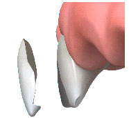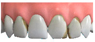 A veneer is a thin layer of porcelain made to fit over the front surface of a tooth, like a false fingernail fits over a nail. Sometimes a natural colour 'composite' material is used instead of porcelain.