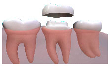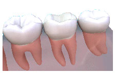 Crowns are an ideal way to rebuild teeth which have been broken, or have been weakened by decay or a very large filling. The crown fits right over the remaining part of the tooth, making it strong and giving it the shape and contour of a natural tooth. Crowns are sometimes also known as 'caps'. An 'Anterior Crown' is a crown fitted to the front eight teeth.