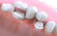 This depends on the number of teeth missing and on where they are in the mouth. The condition of the other teeth also affects the decision. There are two main two ways to replace the missing teeth. The first is with a removable false tooth or teeth - a partial denture. The second is with a fixed bridge. A bridge is usually used where there are fewer teeth to replace, or when the missing teeth are only on one side of the mouth.